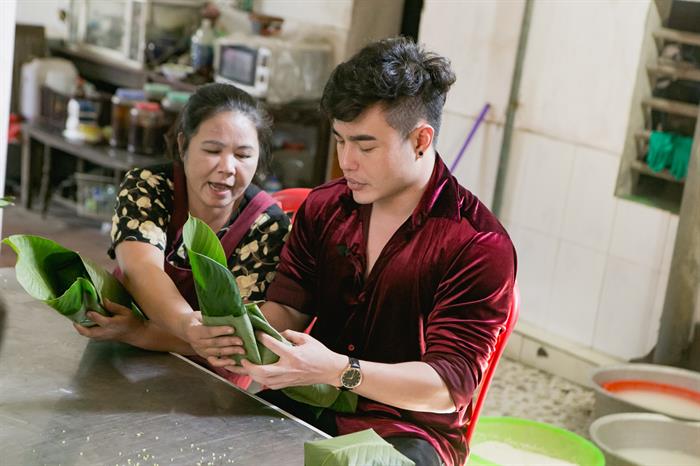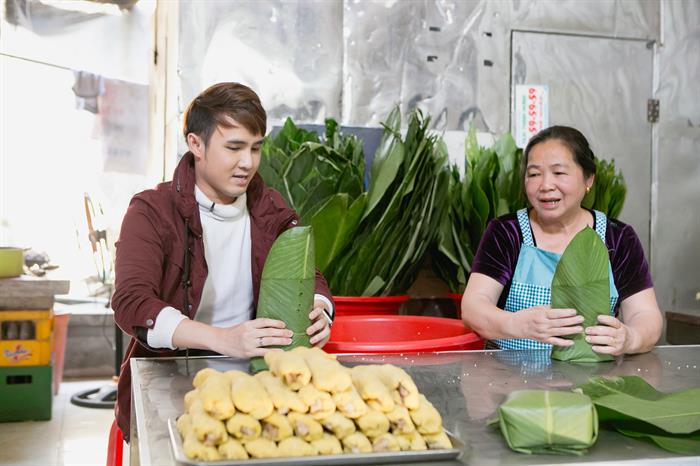 Sau khi tìm hiểu về cây chè Thái Nguyên, Huỳnh Lập và Dương Lâm còn cùng nhau đến làng bánh chưng Bờ Đậu được bán quanh năm, nổi tiếng ngon nhất Miền Bắc. Làng bánh chưng Bờ Đậu với hơn 50 năm tuổi nghề đã trở thành một điểm đến độc đáo thu hút du khách yêu thích ẩm thực.