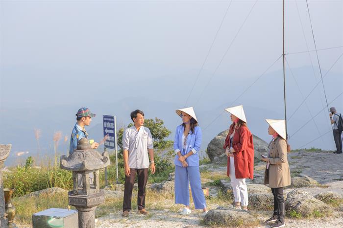 Đỉnh núi Yên Tử còn gọi là đỉnh Phù Vân, vẻ đẹp nơi đây hùng vĩ, được bao bọc bởi mây và núi chính vì thế Phù Vân đã trở thành cái tên đi vào thơ ca Việt Nam và nổi tiếng gắn liền khi nhắc đến Yên Tử. Không chỉ tham quan, gia đình Hồ Ngọc Hà còn cùng Cindy Bishop và Lý Quí Khánh tham gia các hoạt động nhảy sạp và hát Xẩm đều là những hoạt động nổi bật ở các lễ hội miền Bắc. Vì là lần đầu tiên trải nghiệm, Hồ Ngọc Hà rất hào hứng cùng mẹ thi nhảy sạp với Cindy Bishop. Đến với hoạt động hát Xẩm, Hồ Ngọc Hà còn trổ tài chơi nhạc cụ và học thử hát Xẩm khiến Cindy Bishop thích thú quay lại hình ảnh vui nhộn và ý nghĩa này.