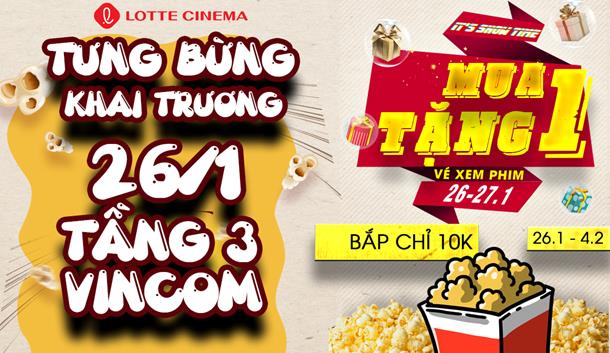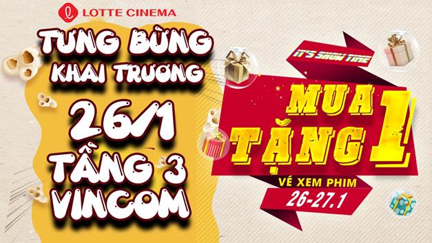 - Mua 1 vé được tặng ngay 1 vé ( 26/01 - 27/01): Khách hàng mua 1 vé xem phim sẽ được tặng ngay 1 vé xem phim 2D.