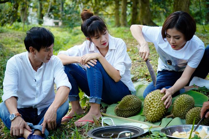 tuần này Vân Trang đưa vợ chồng Lý Hải về với quê nhà tại Cai Lậy, khám phá ẩm thực miền Tây mà sầu riêng là một trong số đó.