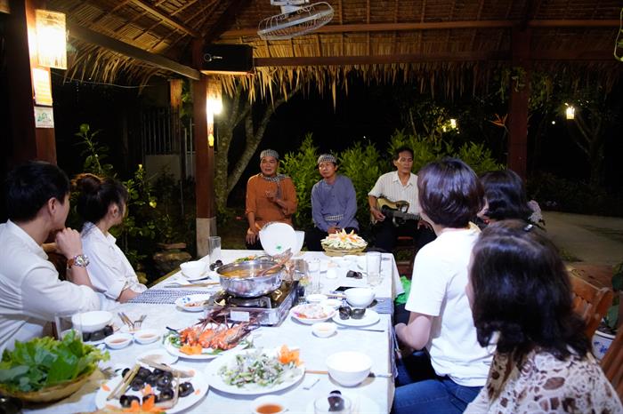 Tiền Giang là cái nôi của nghệ thuật Cải Lương. Được ăn ngon, Lý Hải, Minh Hà cùng Vân Trang còn được thưởng thức giai điệu ngọt ngào của Cải Lương. Vân Trang còn chủ động hát Cải lương giao lưu cùng các nghệ sỹ nơi đây khiến vợ chồng Lý Hải không khỏi bất ngờ trước giọng ca ngọt lịm của Vân Trang như một nghệ sỹ cải lương thực thụ.