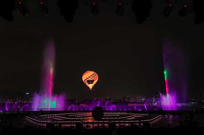 Đến với sự kiện khai trương, khán giả đã được chiêm ngưỡng tiết mục biểu diễn nhạc nước kết hợp ánh sáng laser kéo dài 15 phút sống động, mãn nhãn. Đây là lần đầu tiên người dân ở TP.HCM được chứng kiến màn trình diễn đầy ấn tượng của Khu nhạc nước dài gần 160m, kết hợp hài hòa 3 yếu tố âm nhạc, nước và ánh sáng. Theo đơn vị sản xuất, đây là “siêu đài phun nước” lớn nhất Việt Nam, sử dụng công nghệ hiện đại để tạo nên những tiết mục trình diễn nhạc nước đa sắc màu với hiệu ứng âm thanh sống động.