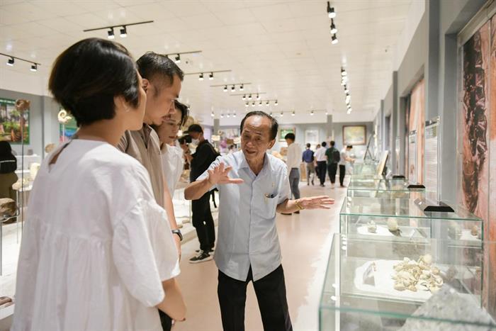 PGS.TS. Nguyễn Lân Cường thuyết minh về hóa thạch với khách tham quan