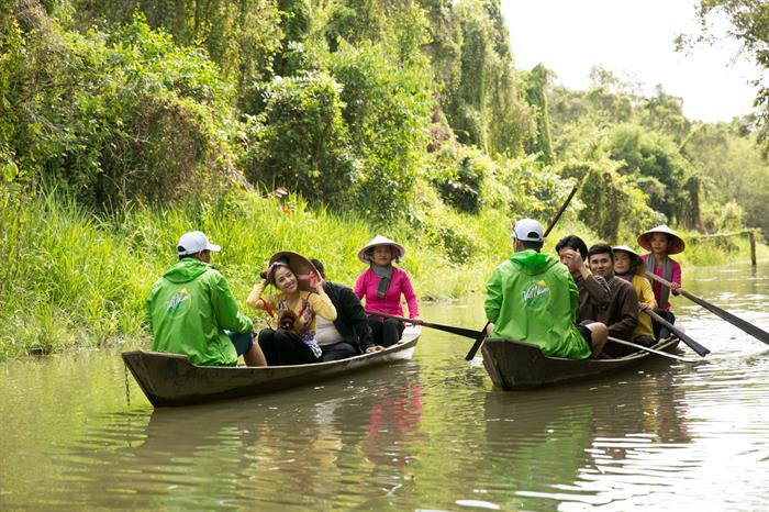 Tintuc - Sau ngày dài tham quan và học nghề ở Lai Vung như đóng xuồng, làm nem, thu hoạch trái cây, đôi vợ chồng sắp cưới Puka – Diệp Tiên tiếp tục tận hưởng “tuần trăng mật” cùng Quang Trung, Tiến Công với địa điểm tiếp theo tại khu du lịch tiêu biểu của Đồng bằng sông Cửu Long – Khu du lịch sinh thái Gáo Giồng.
