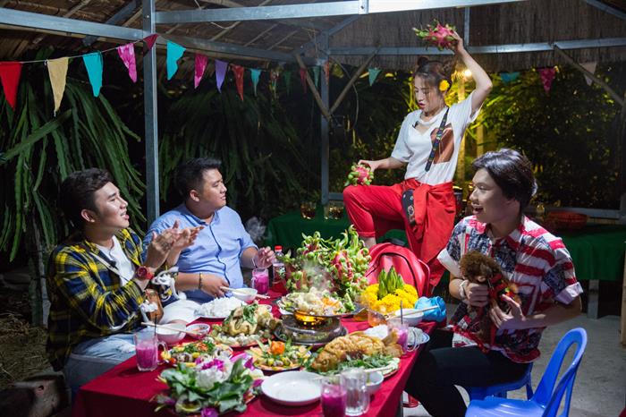 Hết ăn nem rồi lại tham quan vườn trái cây, Puka còn dẫn Diệp Tiên cùng Tiến Công và Quang Trung “tấn công” vườn thanh long nổi tiếng nơi đây, vừa tham quan vừa thưởng thức những quả thanh long chín mọng.