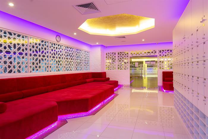 Khu vực phòng thay đồ được thiết kế sang trọng và tinh tế, nơi hội viên có thể nghĩ ngơi thưgiãn cùng bạn bè sau những giờ tập luyện sôi động.