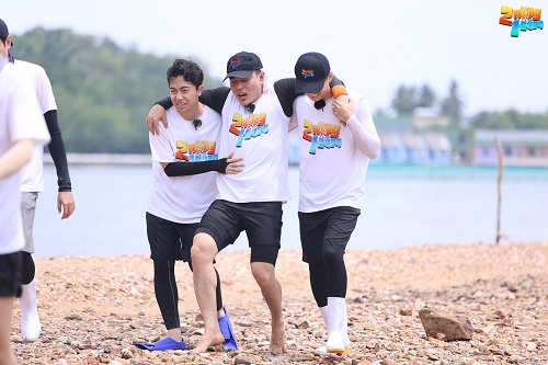Đây cũng là lần đầu tiên hieuthuhai phải tắm lộ thiên cùng 2 đàn anh và có máy quay theo sát ghi hình nên anh chàng không tránh khỏi bẽn lẽn ngượng ngùng. Khi ‘cực phẩm 6 múi’ lộ diện, 2 người anh đặc biệt là Trường Giang đã không ngừng ‘á ố’ trước cơ bụng của cậu út. Tuy sở hữu thân hình không chút mỡ thừa nhưng hieuthuhai vẫn phải nhờ tới sự trợ giúp của Kiều Minh Tuấn để thay đồ.