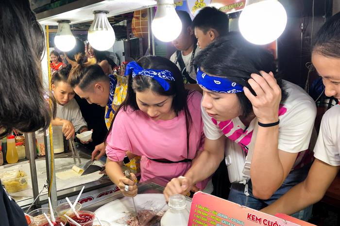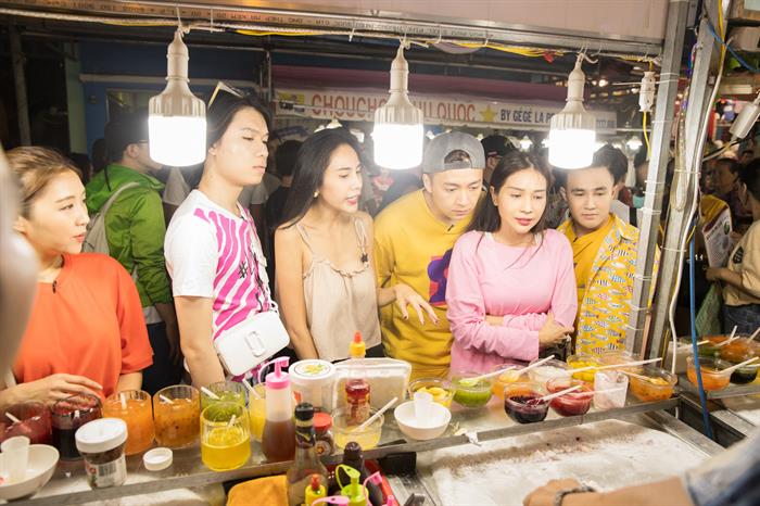 Không chỉ đón tiếp nồng hậu bằng bữa tiệc hải sản, Thủy Tiên còn đưa dàn nghệ sỹ dạo chơi tại chợ đêm Phú Quốc – một trong những trung tâm sầm uất nhất Phú Quốc. Không chỉ tham quan, vui chơi các nghệ sỹ còn phải vượt qua thử thách từ chương trình với các hoạt động bán hàng rong, múa hát, đố vui…