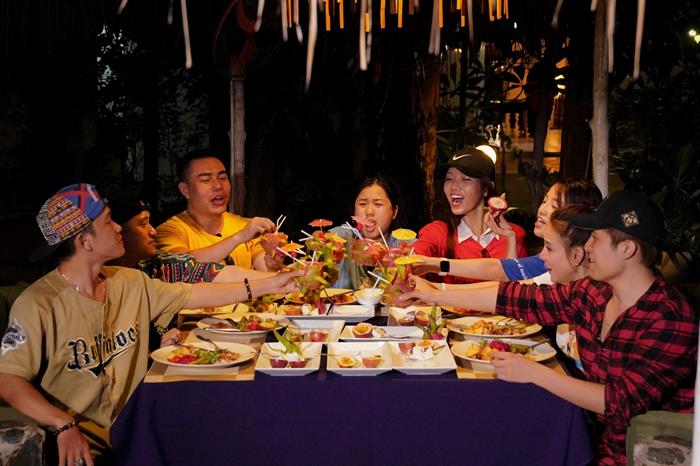 Sau khi trải nghiệm và vui chơi tại vườn Thanh Long, “hướng dẫn viên” Vy Oanh tiếp tục hành trình đưa dàn nghệ sỹ đến một nhà hàng nổi tiếng để thưởng thức đặc sản ẩm thực Bình Thuận là những loại hải sản tươi ngon, cocktails Thanh Long và đặc biệt là….thịt cá sấu. Chỉ nghe đến cái tên thôi cũng đã thấy run sợ, thế nhưng sau khi được thưởng thức màn chế biến thịt cá sấu đầy ấn tượng, món ăn này trở nên hấp dẫn và lôi cuốn hơn bao giờ hết khiến dàn nghệ sỹ thích thú mải mê thưởng thức.