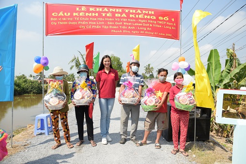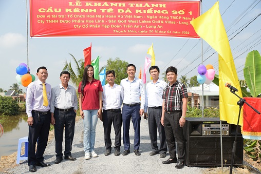 Tintuc - Vừa qua, Á hậu Kim Duyên cùng tổ chức Hoa hậu Hoàn vũ Việt Nam phối hợp cùng cơ quan chính quyền địa phương đã tổ chức Lễ trao Cầu, chính thức khánh thành và đưa vào hoạt động 03 chiếc Cầu tại huyện Bến Lức, trao tặng hàng trăm phần quà Tết cho người dân huyện Đức Huệ, Long An.