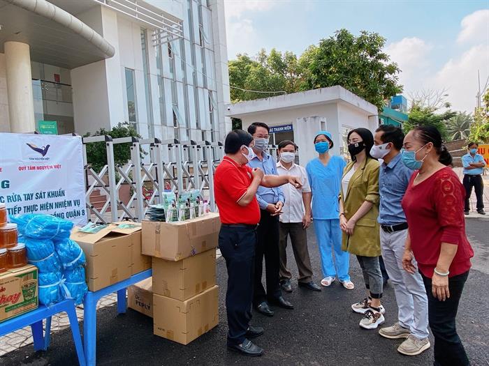 Giám Đốc TTYT quận 8 là người đại diện trực tiếp nhận phần quà tại Khu vực cách ly kiểm dịch cộng đồng TTYT quận và sẽ cấp phát xuống đội ngũ Y Tế 16 phường. Buổi trao tặng diễn ra nhanh chóng nhưng đầy đủ ý nghĩa, ko rườm rà để tránh tập trung đông người.