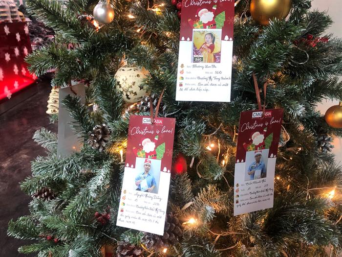 Cứ vào mỗi dịp cuối tháng 11, đầu tháng 12 hàng năm, đại gia đình CMG.ASIA lại khởi động chương trình Christmas Giving Tree. Theo đó, nhân viên công ty sẽ đến các mái ấm, nhà tình thương hoặc trung tâm bảo trợ trẻ em để gặp gỡ, trò chuyện và cẩn thận ghi lại những mong ước của các em nhỏ trong mùa Giáng sinh. Những thông tin về các em bao gồm tên, tuổi, giới tính, địa chỉ, hình chụp chân dung cũng như điều ước sẽ được in ra thành những tấm thẻ ước nguyện. Những tấm thẻ này được treo trên cây thông Noel đặt tại các Câu lạc bộ (CLB) và văn phòng, bao gồm trung tâm California Fitness & Yoga, California Centuryon, UFC Gym, Yoga Plus và Eri International. Nhân viên và hội viên tại các CLB sẽ chọn cho mình một tấmthẻ ước nguyện Giáng sinh của các em, mang về, chuẩn bị quà theo thông tin được cung cấp, quà tặng sẽ được trao cho các em trong khoảng thời gian từ 20/12 – 24/12/2018.