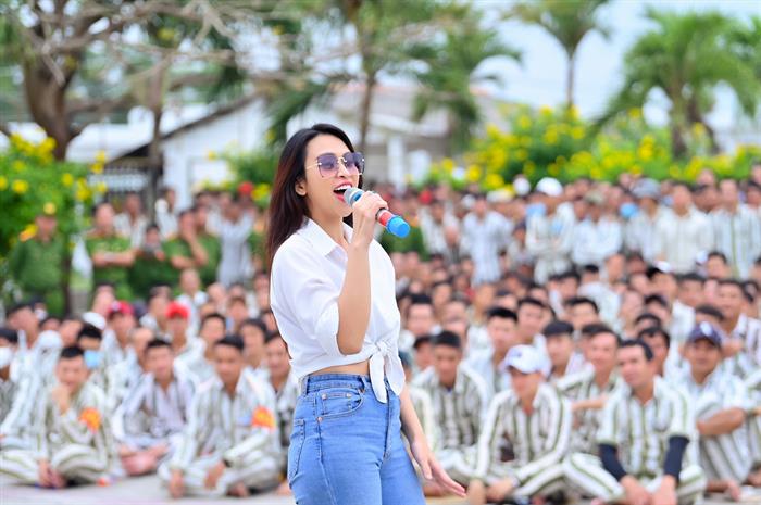 Cát Phượng xúc động khi hát “Lòng mẹ” trước toàn thể phạm nhân và cán bộ.