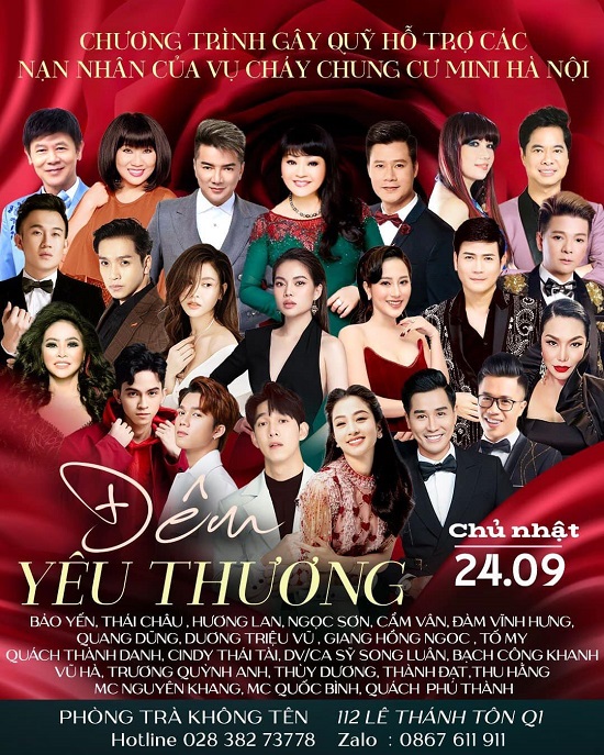Liên hệ đặt chỗ chương trình “Đêm yêu thương” tại phòng trà Không Tên qua hotline: 02838273778