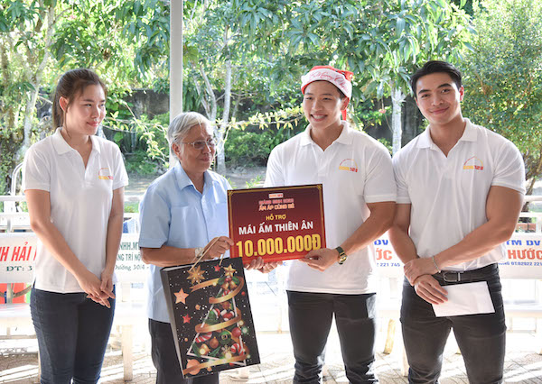 Không chỉ đem đến những nhu yếu phẩm, thuốc – vitamin, hiện kim và quà bánh cho các bé tại chùa Bửu Trì và Mái ấm Thiên n, các anh chị nghệ sỹ còn tổ chức sinh hoạt với những trò chơi vận động chia nhóm cùng các bé, hóa thân thành những ông già Noel, những cô gái Noel dễ thương đem đến cho các bé những món quà Giáng sinh ngộ nghĩnh xinh xắn như vòng đeo tay, mũ hay kẹp đội đầu với các biểu tượng đặc trưng của Giáng sinh.