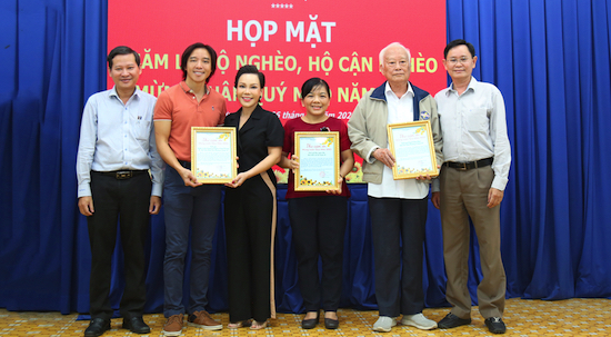 Tintuc - Gia đình nghệ sĩ Việt Hương – Hoài Phương vừa tham gia với UBND Phường 2, Quận 10 (TP.HCM) trao tặng quà cho bà con các hộ nghèo và cận nghèo đang sinh sống trên địa bàn phường.