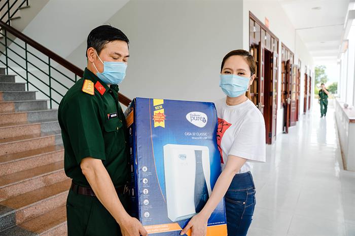 Dù khá bận rộn với dự án phim điện ảnh Người Cần Quên Phải Nhớ và đang là giám đốc điều hành của trung tâm năng khiếu nghệ thuật Ola Star Academy, nhưng khi nghe một người bạn nói tỉnh Khánh Hòa đang cần sự hỗ trợ cho các bệnh nhân Covid, nữ diễn viên đã đến ngay để trao tặng những vật dụng hỗ trợ cho người dân đang cách ly và các bệnh nhân nơi đây.