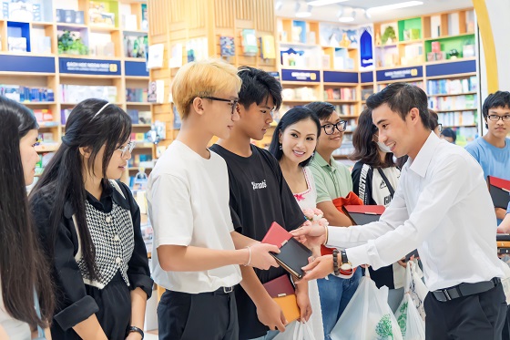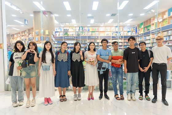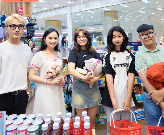 Sau khi cho các bạn nhỏ ăn trưa tại trung tâm thương mại ở quận 2, ca sĩ Hà Phương đã dẫn các bạn vào hiệu sách để các em có thể tự do lựa chọn đồ dùng học tập, sách vở cho năm học sắp đến.