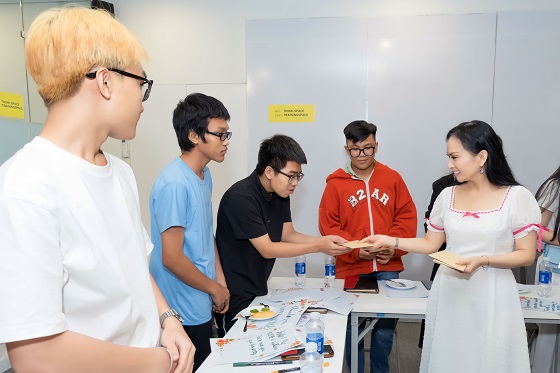 Bên cạnh đó, cô con gái út của ca sĩ Hà Phương cũng đặc biệt yêu thích bộ môn viết chữ Calligraphy, một dạng thư pháp của châu Âu. Chính vì vậy, sau khi kết thúc việc mua đồ dùng học tập, Angelina đã đề nghị được giới thiệu bộ môn này và giao lưu với các bạn nhỏ. Tất cả các em đều tỏ ra rất hào hứng. Hai mẹ con và 10 bạn nhỏ đó có một buổi chiều giao lưu thư pháp đầy vui vẻ và ý nghĩa. Kết thúc buổi viết chữ thư pháp, các em tặng nhau những trang giấy với đầy những lời cảm ơn ca sĩ Hà Phương và con gái. Đồng thời, ca sĩ Hà Phương cũng tặng các em nhỏ những phần quà nhỏ để giúp thêm các em trong năm học mới.