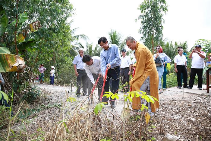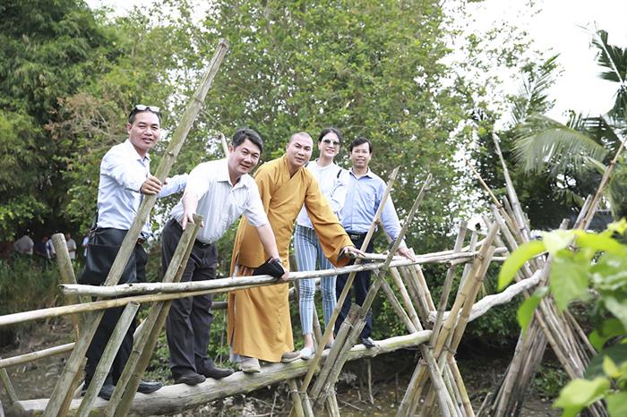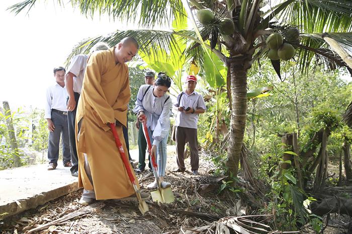 Tintuc - Vừa qua, cựu người mẫu Trang Trần cùng sư thầy Phú Minh và các thành viên Hội từ thiện Tường Nguyên Thiền Tự, Q.4, TP.HCM đi khởi công xây dựng 10 cây cầu ở các tỉnh miền Tây gồm: Tiền Giang, Vĩnh Long, Bến Tre, Kiên Giang.