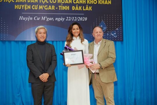 Đây là hoạt động thuộc khuôn khổ chương trình “Nước sạch cho em”, do Tổ chức VinaCapital Foundation (VCF) phối hợp cùng Quỹ học bổng Vừ A Dính và chương trình học bổng ‘Mở đường đến tương lai’. Hoa hậu H’Hen Niê đã đồng hành cùng chương trình nhiều năm, đi đến nhiều nơi giúp đỡ các em học sinh có hoàn cảnh khó khăn. Lần này, cô trực tiếp cùng chương trình về lại ba ngồi trường cũ tại quê nhà: trường Tiểu học Lê Thị Hồng Gấm, trường THCS Lê Hồng Phong, trường THPT Lê Hữu Trác. Tại đây, thay mặt đoàn, Hoa hậu H’Hen Niê trao 225 suất học bổng cho các em học sinh và 03 hệ thống lọc nước. H’Hen Niê tâm sự: “Ba ngôi trường cũ Hen từng học cấp 1, cấp 2, cấp 3 đã hoàn thành dự án máy lọc nước sạch sử dụng cho việc uống nước của các em học sinh và giáo viên. Cảm ơn VinaCapital Foundation và Quỷ Vừ A Dính đã tặng điều đặc biệt này, Hen vô cùng hạnh phúc trước sự quan tâm, ưu tiên của quỹ dành cho ba ngôi trường cũ mình từng theo học. Cám ơn rất nhiều”.