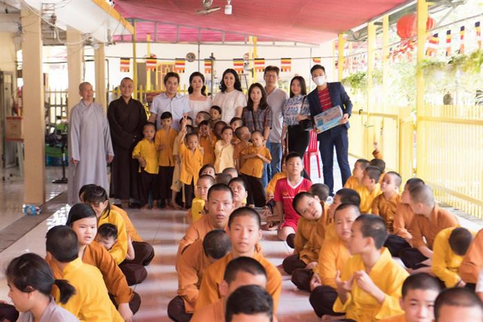 Tham gia buổi từ thiện cùng Huỳnh Thúy Anh là sự góp mặt của Bầu Hòa - người thầy định hướng con đường nghệ thuật giúp hoa hậu vươn lên đỉnh cao nghệ thuật và một số người bạn thân thiết như Á hậu Ngọc Trân Anh, MC Chu Tấn Văn… Cả đoàn có mặt từ sớm tại chùa, ai cũng đều rạng rỡ vì có thể tham gia sự kiện ý nghĩa như thế này.