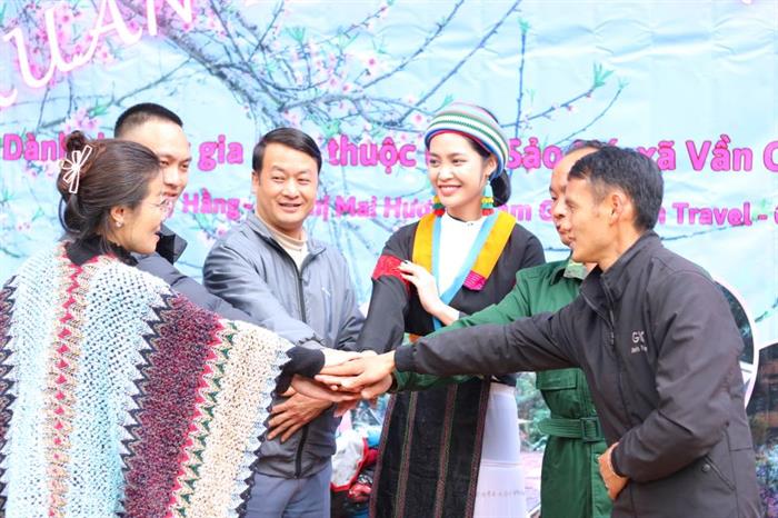 Á hậu Hữu nghị Quốc tế 2023 chia sẻ: “Là một người con của Hà Giang lại yêu thích bộ phim ‘Tết ở làng Địa Ngục’ nên tôi đã quyết tâm sắp xếp lịch trình để đến thăm làng Sảo Há. Đặc biệt, khi biết được tỉ lệ hộ nghèo tại đây là gần 94% lại càng thôi thúc tôi sớm thực hiện chuyến đi này”.