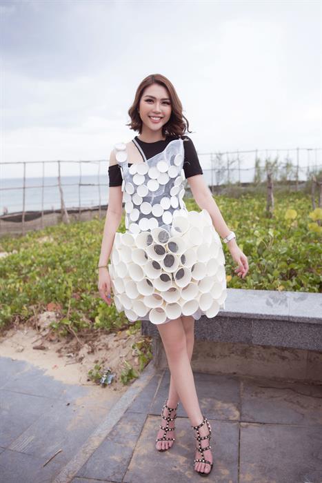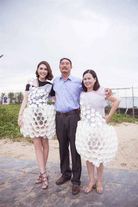 Tintuc - Chiều qua, Hoa hậu Sắc đẹp châu Á 2017, Tường Linh, thích thú cùng mẹ mặc váy được tái chế từ những vỏ cốc giấy xuống đường cùng các bạn học sinh, sinh viên kêu gọi bảo vệ môi trường xanh, sạch, đẹp cho quê hương Phú Yên.