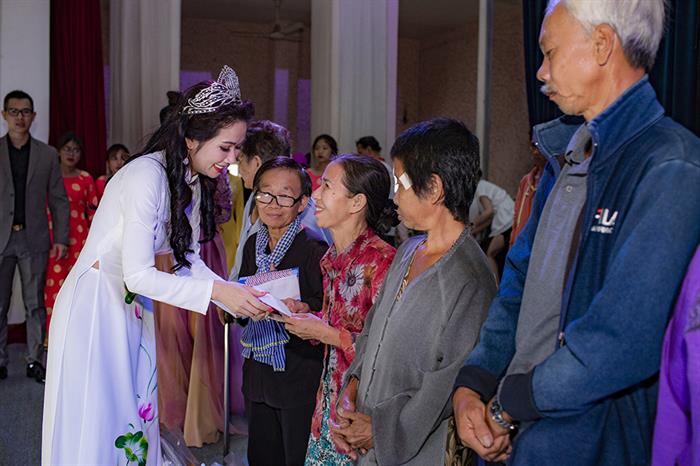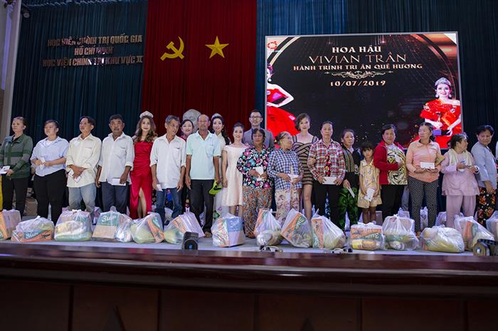 Đoàn đã gửi tặng 500 suất quà quà cho các hộ gia đình khó khăn, người già neo đơn. Các phần quà có tổng giá trị là 250 triệu đồng. Đây là một hành động thiết thực mà Hoa hậu VivianTrần muốn thực hiện ngay trên quê hương, đất nước của mình khi đã mang trên mình một sứ mệnh mới.