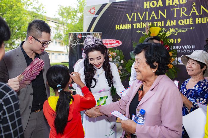 Có mặt tại trong chuyến từ thiện, Vivian Trần một lần nữa chọn tà áo dài truyền thống, đầu đội vương miện, diện mạo của cô tiếp tục nhận được sự đánh giá cao. Đại diện chương trình “Hành trình tri ân quê hương” tân Hoa hậu Doanh nhân Quốc tế Vivian Trần trực tiếp trao quà, chia sẻ với các bà, các mẹ, các anh chị có hoàn cảnh khó khăn.