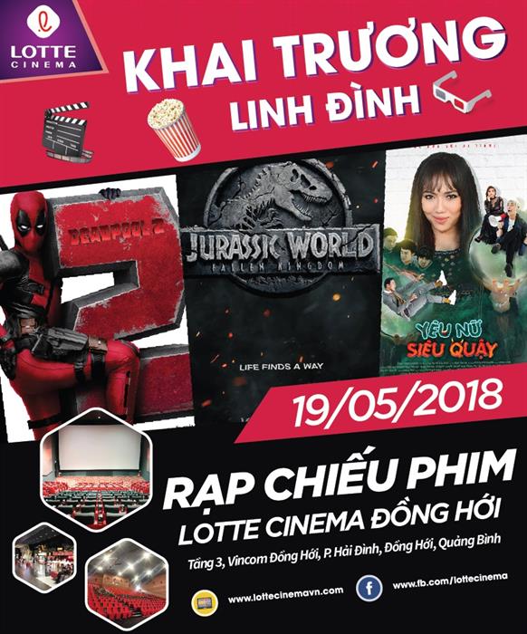 Với tinh thần đó, vào ngày 19.05.2018 tới, Lotte Cinema cũng sẽ mở cửa một cụm rạp mới tại Đồng Hới, Quảng Bình – đánh dấu cụm rạp số 37 của Lotte Cinema tại Việt Nam và cũng là một địa phương chưa có nhiều hoạt động giải trí cho nhân dân. Mang sứ mệnh nâng cao đời sống tinh thần cho người dân địa phương bằng các bộ phim hay đến từ trong và ngoài nước, Lotte Cinema cũng sẽ cố gắng để phục vụ khán giả Đồng Hới thật tốt, tạo điều kiện để cống hiến đóng góp nhiều hơn nữa cho cộng động, cho các hoàn cảnh đặc biệt khó khăn trong tương lai không xa.