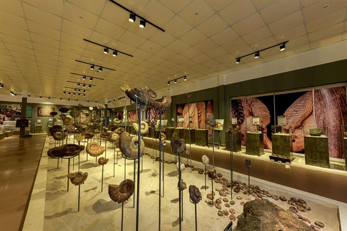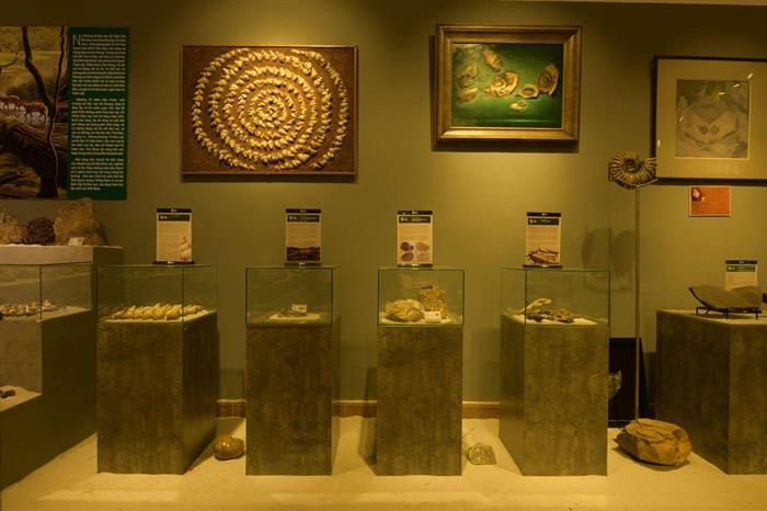 Một góc triển lãm trưng bày rất nhiều loại hóa thạch