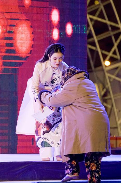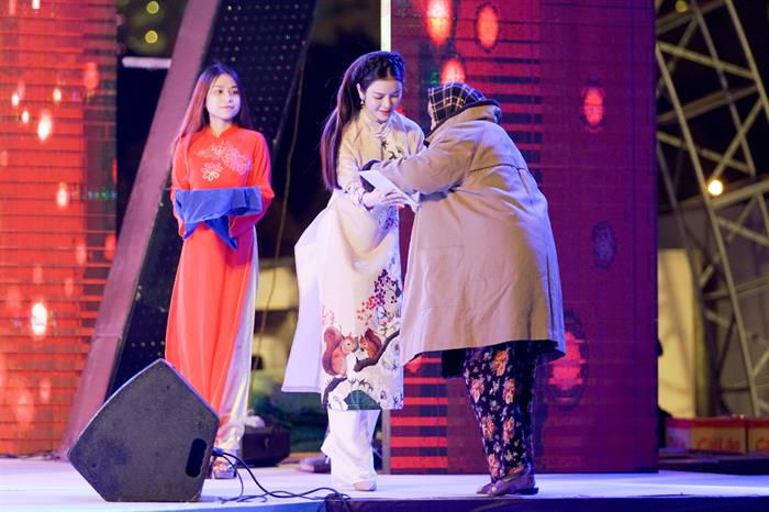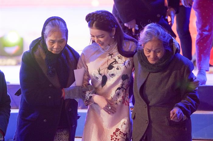 Ngồi phía dưới khán đài, chứng kiến nhiều bà con dù thời tiết giá lạnh nhưng vẫn háo hức đến nhận quà khiến Lý Nhã Kỳ xúc động. Nhiều khán giả còn cho biết cố đến vì muốn được tận mắt ngắm “cô Diễm Kiều" trong phim "Kiều nữ và đại gia” khiến người đẹp cảm động đến rơi lệ. Đã khá lâu không đóng phim truyền hình, nhưng những dấu ấn mà cô để lại trong lòng khán giả màn ảnh nhỏ vẫn sâu sắc vẹn nguyên như thế.