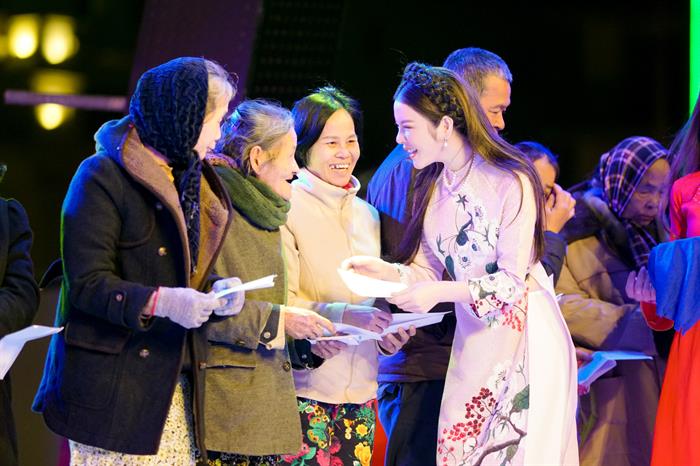 Tại chương trình, dù góp mặt với vai trò nhà tài trợ đồng hành nhưng Lý Nhã Kỳ không hề có một khoảng cách nào với bà con nghèo. Cô ân cần dìu tay từng người lên sân khấu và trao cho họ những cái bắt tay những lời động viên chân thành. “Mỗi một cái tết đến thì Kỳ lại canh cánh trong lòng liệu ngoài kia còn bao nhiêu cụ già, bao nhiêu em nhỏ vẫn chưa có áo mới chưa có bánh chưng… Kỳ biết sức của mình có hạn nhưng vẫn có một “tham vọng” là mang được đến ngày một nhiều hơn những giúp đỡ giúp mọi người có một cái tết đủ đầy hơn hằng năm”, người đẹp chia sẻ với đôi mắt lấp lánh niềm tin. Hành động ân cần và sự giản dị đó của cô đã để lại được nhiều thiện cảm với nhiều người tại hội trường buổi trao quà. Nhiều khán giả còn chụp lại màn hình và bình luận trên mạng xã hội rằng chưa có khoảnh khắc nào lại thấy nàng “kiều nữ” đẹp và gần gũi đến vậy, có lẽ đó sẽ là khoảnh khắc khó quên với nhiều người hâm mộ.
