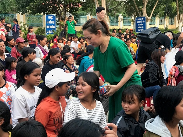 Cô luôn tâm niệm san sẻ may mắn của mình cho những mảnh đời bất hạnh hơn. 600 phần bánh cho trẻ em và học sinh, 150 phần quà cho bà con, ngoài ra còn hơn 20 học bổng cho học sinh nghèo dân tộc hiếu học. Toàn bộ kinh phí của chuyến đi đều do Phi Nhung bỏ ra cũng như doanh thu từ 2 quán Buddha Chay. 2 quán chay của nữ ca sĩ rất được khán giả ủng hộ đúng tiêu chí ngon- bổ – rẻ.