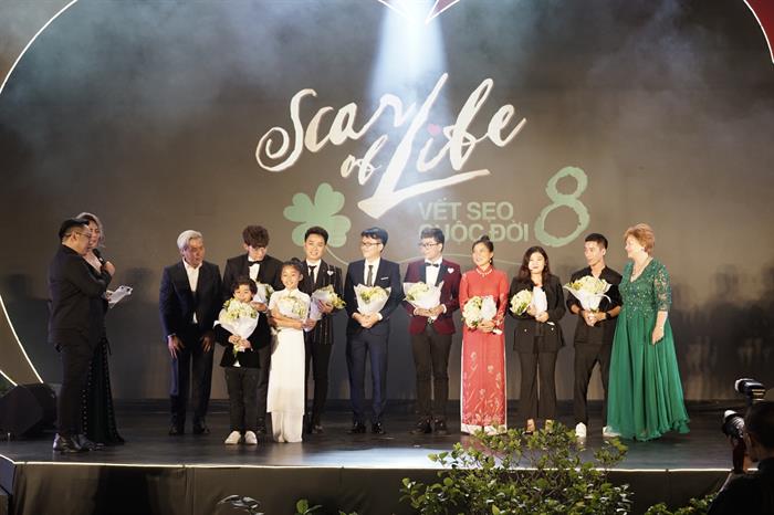 "vết sẹo cuộc đời 8 ” đã được sự đồng hành của các nghệ sỹ như NSUT Hữu Châu, NSUT Linh Nga, Hồng Nhung, Minh Khang, Thuý Hạnh,... Điểm nhấn đặc biệt của dự án năm nay là bộ phim ngắn "Cỏ bốn lá" của đạo diễn trẻ Jun Phạm do Ngô Thanh Vân sản xuất. Đêm trình diễn nghệ thuật và đấu giá gây quỹ được dẫn dắt bởi MC Tùng Leo và Bùi Việt Hà. Mở màn chương trình là phần trình diễn của nhóm múa ABC Kids trong một tiết mục múa dân gian đầy tươi vui và mới mẻ . Xen kẽ cùng với những màn đấu giá đầy sôi nổi là tiết mục "Cỏ bốn lá" do ca sỹ Trúc Nhân trình bày cũng là bài hát chủ đề cho phim ngắn tiêu điểm năm nay.