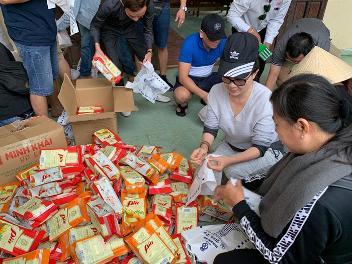 Tiếp tục cuộc hành trình cứu trợ, đoàn đã đến với người dân xã Mỹ Chánh, huyện Hải Lăng, tỉnh Quảng Trị. Tại đây, đoàn đã trao tặng 200 phần quà, trị giá mỗi phần là 500.000 đồng bao gồm: 300.000 đồng tiền mặt, 10kg gạo và một phần bánh pía.