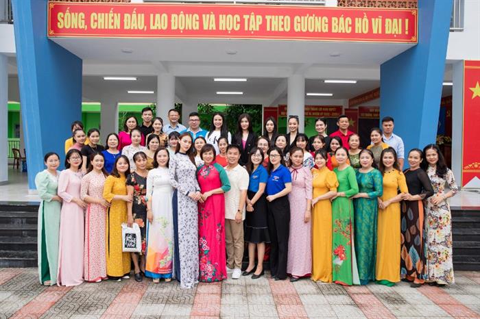 Tintuc - Nhằm lan tỏa tình yêu Áo dài, vừa qua, NTK Việt Hùng cùng Người đẹp Áo dài Hoa hậu Hoàn vũ Việt Nam 2022 Đặng Hoàng Tâm Như đã mang 50 áo dài trị giá hơn 200 triệu đồng để dành tặng cho các cô giáo Trường Tiểu học số 2, Xã Hoà Sơn, Huyện Hoà Vang, Thành phố Đà Nẵng.