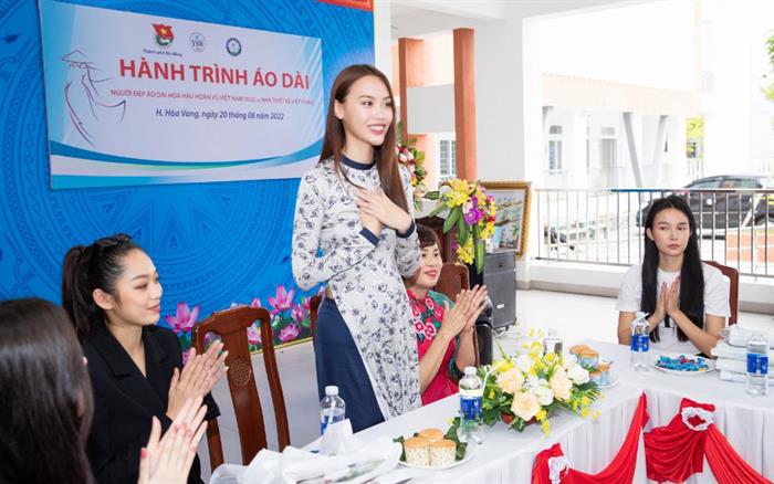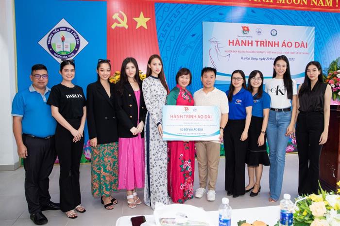 Giản dị trong trang phục Áo dài, Người đẹp Áo dài Đặng Hoàng Tâm Như và các Hoa hậu, người mẫu đã thân thiện tặng quà cho các cô giáo. Đặng Hoàng Tâm Như chia sẻ: Ngay khi được nhận danh hiệu Người đẹp Áo dài Hoa hậu Hoàn vũ Việt Nam 2022, bản thân em đã tự nhận thức được trách nhiệm của mình đối với cộng đồng, xã hội. Em rất vui được đồng hành cùng NTK Việt Hùng trong dự án Hành trình Áo dài, được đến thăm, trao quà và tặng áo dài cho các cô giáo vùng sâu, vùng xa…Em mong muốn sẽ được tham gia thật nhiều những chuyến đi đáng nhớ như thế này, để lan tỏa tình yêu áo dài và để tà áo dài luôn là nét tự hào của người phụ nữ Việt Nam”.