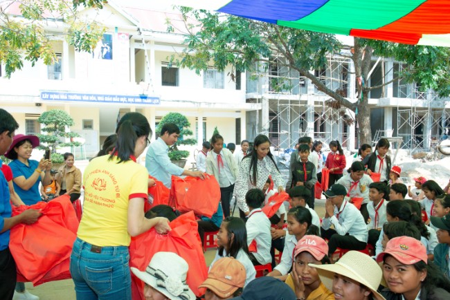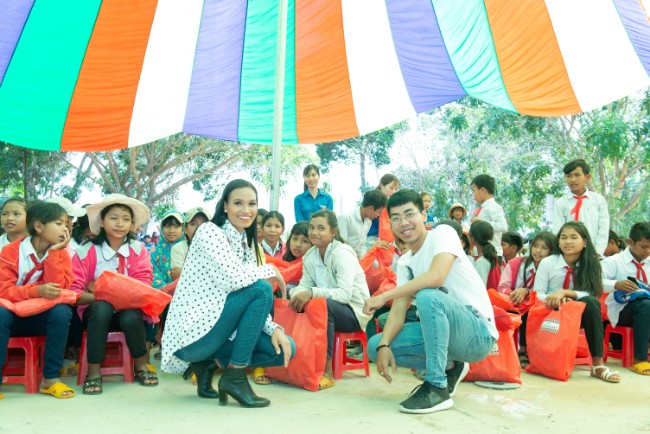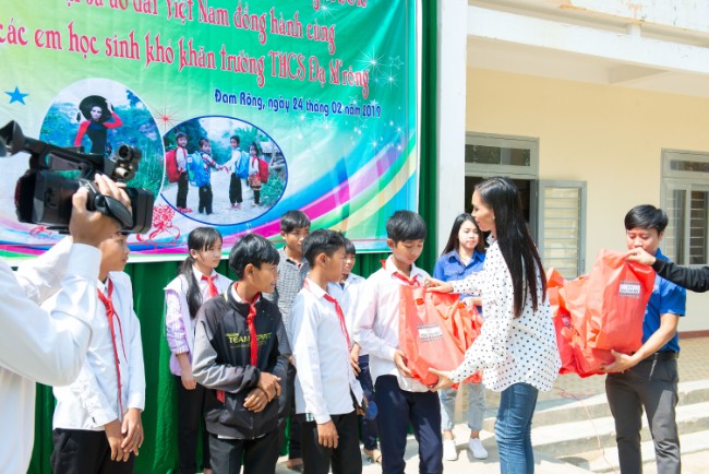 NTK Việt Hùng và H’ Ăng Niê- Á hậu 2 Hoa hậu Siêu Mẫu Thế Giới 2018 trong chuyến trao quà cho các em học sinh nghèo tỉnh Lâm Đồng. Chương trình từ thiện này nằm trong dự án dài hơi “Hoa của Đất”- một dự án về Thổ cẩm mang nhiều ý nghĩa nhân văn do NTK Việt Hùng và người đẹp H’ Ăng Niê cùng chung tay thực hiện.