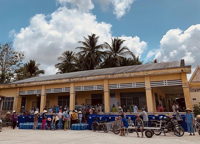 Ngày 6/3, năm tỉnh miền Tây gồm Tiền Giang, Bến Tre, Long An, Kiên Giang, Cà Mau, công bố tình trạng hạn mặn khẩn cấp, vượt mốc lịch sử 2016. Toàn tỉnh Bến Tre bị nước mặn bủa vây, khoảng 5.000 ha lúa chết dần, gần như mất trắng. Cây trái cằn cỗi, khô héo vì sốc nước mặn thời gian dài. Nhiều nơi, người dân phải mua nước sông từ các ghe, sà lan chở từ vùng chưa bị mặn về với giá 100.000-200.000 đồng mỗi m3.