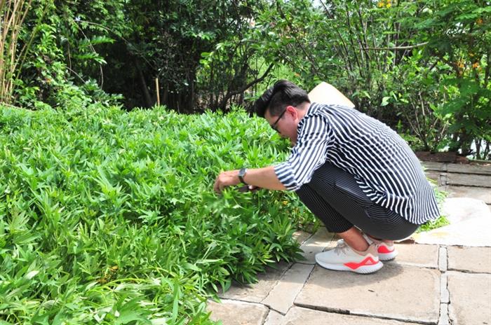 Sau khi cắt rau, Quách Ngọc Tuyên mang ra chợ bán. Bà con ở đây nhanh chóng nhận ra “anh Vi Cá” và vây quanh vì tò mò.