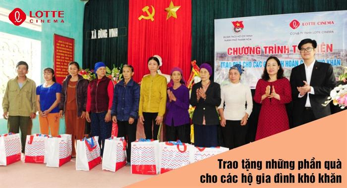 Được biết, chính trong dịp Tết Nguyên Đán vừa qua, Lotte Cinema đã phát động chương trình “Tết Ấm Tình Thương” – vận động khán giả xem phim quyên góp quần áo từ thiện tại 12 cụm rạp ở khu vực miền Bắc, với kết quả là 2,500 bộ quần áo được ủng hộ. Sau đó, Lotte Cinema cùng Đoàn Thanh Niên và Tổ Chức Tình Nguyện T36, tiến hành sắp xếp, đóng gói, vận chuyển tới xã Đông Vinh và trao tặng từ sáng sớm. Đông đảo người dân địa phương, cùng đại diện các cấp chính quyền cùng có mặt chứng kiến và tiếp nhận sự ủng hộ giúp đỡ này.
