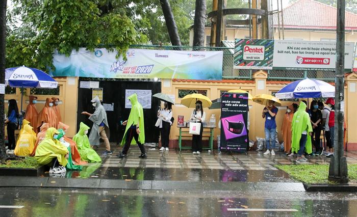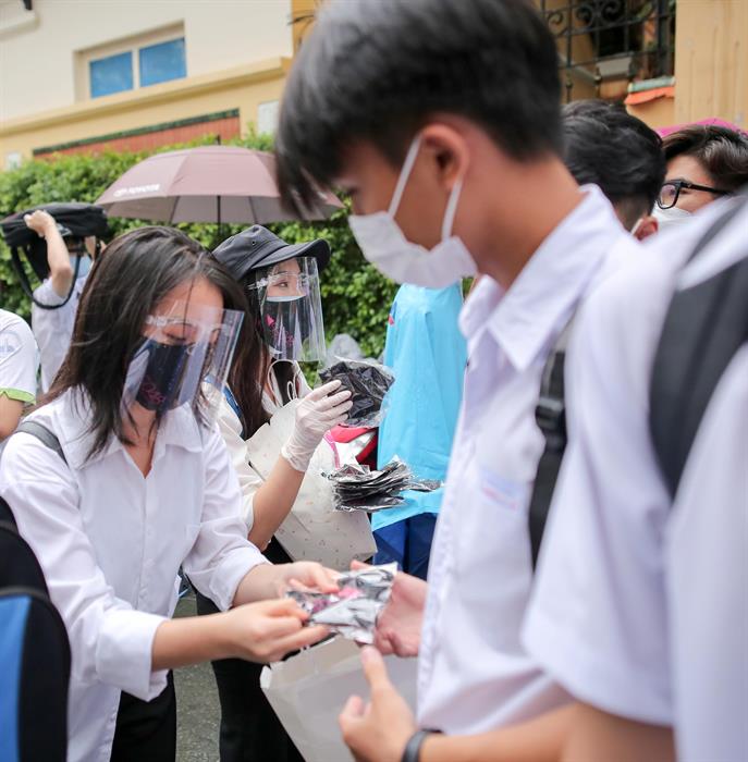 Lúc chiều tặng khẩu trang, em quan sát thấy mấy bạn ra về cười tươi rói chắc làm bài tốt lắm nhưng thỉnh thoảnh cũng gặp vài bạn bước chân hơi nặng thì em tặng bạn khẩu trang rồi chúc bạn giữ tinh thần để mai thi tiếp. Mấy bạn tình nguyện viên dễ thương chân thành, trời mưa mà không than thở gì hết, đứng xếp hàng ngay ngắn thấy bạn nào thi ra cũng vỗ tay tuyên dương. Em thấy có những ngày mưa nhưng lòng người thật ấm ấp vì ai cũng biết sẻ chia với nhau”.