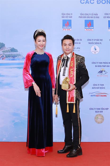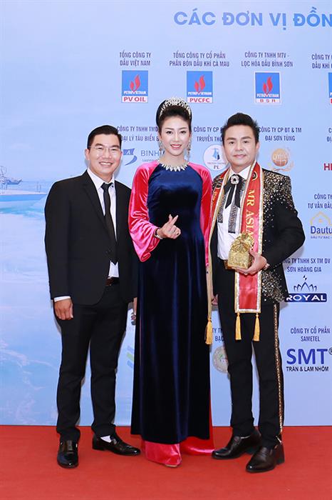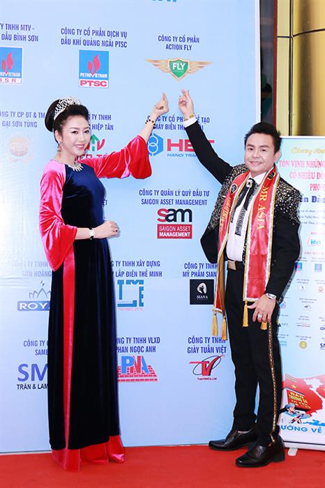 Tân hoa hậu Võ Nhật Phượng xuất hiện xinh đẹp, dịu dàng với trang phục áo dài nhung màu xanh đen, điểm xuyến màu hồng, còn Nam vương Doanh nhân Huy Hoàng lịch thiệp với bộ vest đen, sơ mi trắng.
