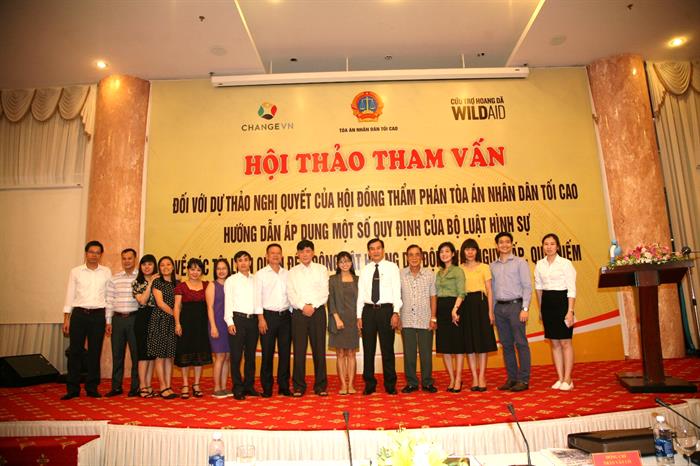 Tòa án Nhân dân Tối cao chủ trì phối hợp cùng Trung tâm Hành động và Liên kết vì Môi trường và Phát triển (CHANGE) và tổ chức Cứu trợ hoang dã (WildAid) tổ chức. Hội thảo tham vấn kéo dài trong hai ngày 2 và 3 tháng 8, có sự tham gia của nhiều chuyên gia tên tuổi, bao gồm: