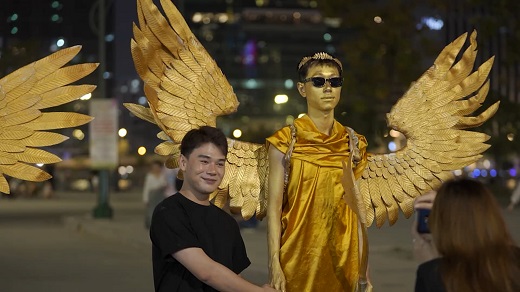 Vừa hào hứng, vừa hồi hộp, Thùy Tiên và Double2T bắt tay vào chuẩn bị dưới sự hướng dẫn của hai “giáo viên”. Hai nghệ sĩ khá thích thú khi được bôi lớp sơn vàng lên hết người, chọn dáng đứng và chính thức được đứng giữa phố đi bộ “tác nghiệp”. Rất nhanh, lượng người xem đã tập trung đông đúc trước các nhân tượng. Từ đây, muôn chuyện từ “dở khóc dở cười” đến thử thách toát mồ hôi hai nhân tượng “tập sự” trong suốt 3 tiếng bắt đầu.