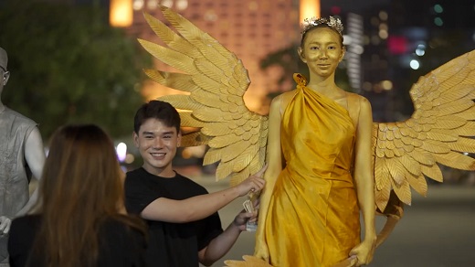 “Nhân tượng”( tượng sống) là một nghề phổ biến trên thế giới. Tại Việt Nam, loại hình này cũng dần trở nên quen thuộc khi góp mặt trong cả văn hóa đường phố và sự kiện lớn nhỏ. Bằng tạo hình hóa trang sơn màu khắp cơ thể ấn tượng, những tư thế độc lạ được giữ yên hàng giờ đồng hồ, “nhân tượng” luôn thu hút sự chú ý của người qua đường trên các phố đi bộ tấp nập hoạt động giải trí. Nghe thì có vẻ đơn giản, nhưng thực tế nghề nhân tượng có nhiều yêu cầu khắt khe.
