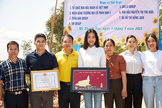 Để tri ân tấm lòng nhân ái của đoàn thiện nguyện, đại diện UBND tỉnh Long An và chính quyền địa phương đã trao tặng bằng khen và vật phẩm lưu niệm ý nghĩa khắc ghi 6 chữ “Long An, Trung Dũng, Kiên Cường” cho thành tích đóng góp trong công tác xây dựng tại địa phương.