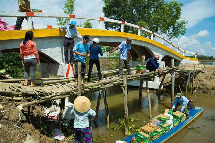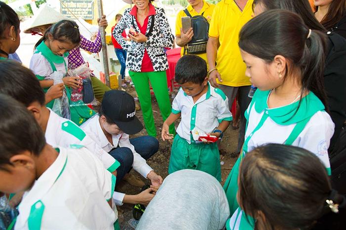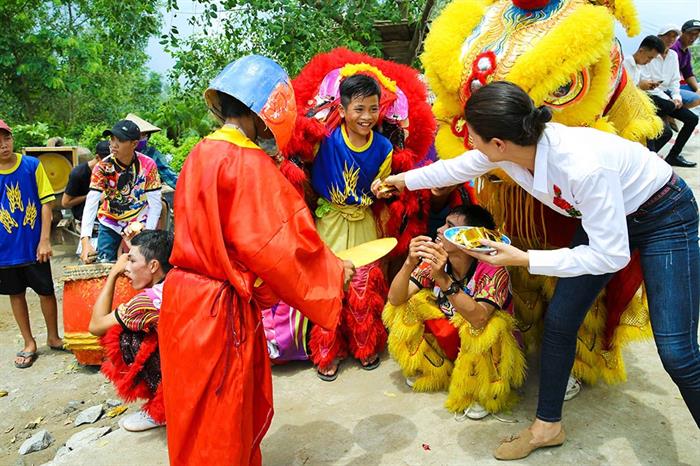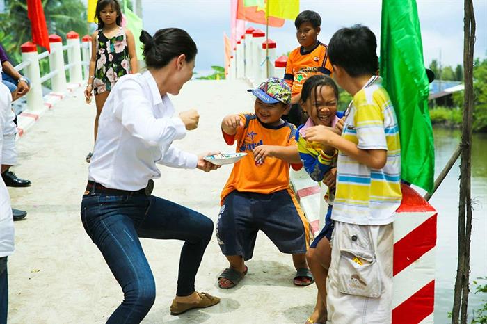 Bên cạnh việc hào hứng đi khánh thành cầu mới, Trang Trần và hội từ thiện còn tặng 150 phần quà trị giá 60 triệu đồng cho các gia đình khó khăn ở Kiên Giang cũng như chuẩn bị nhiều giày dép, dụng cụ học tập tặng trẻ em nghèo hiếu học.